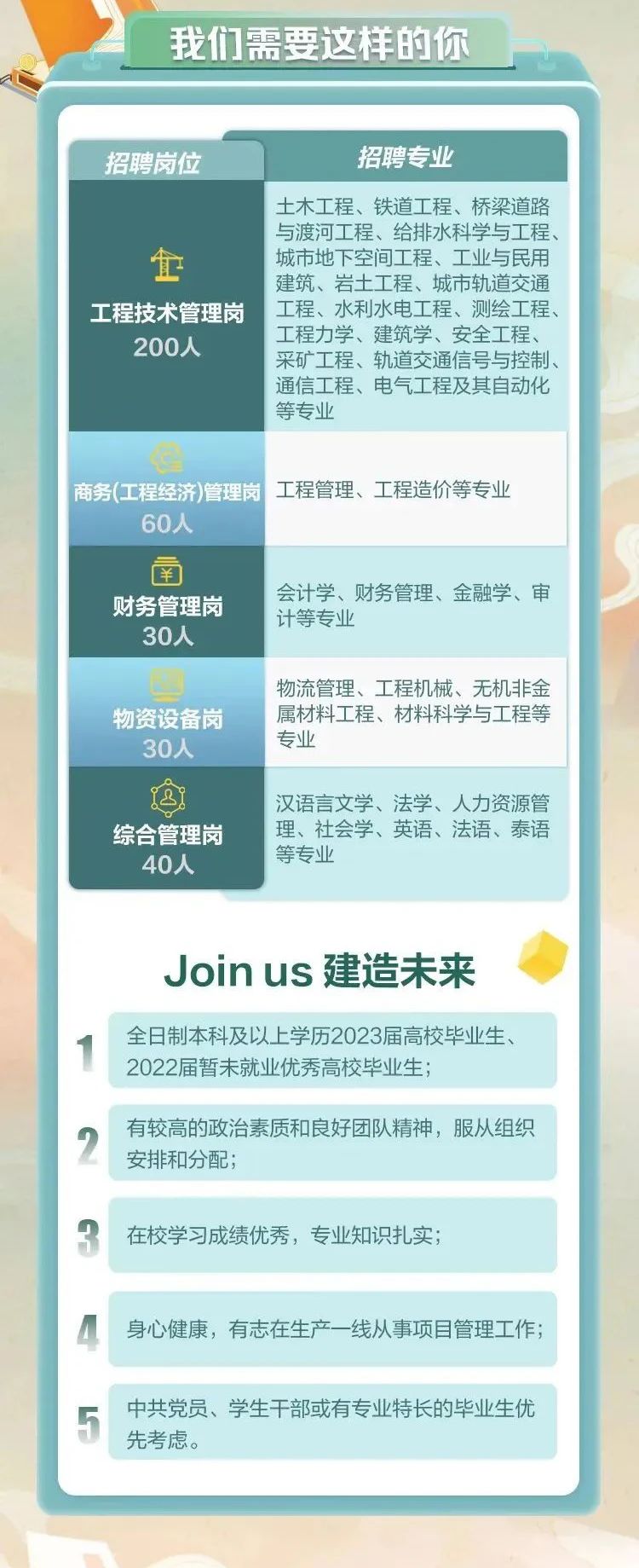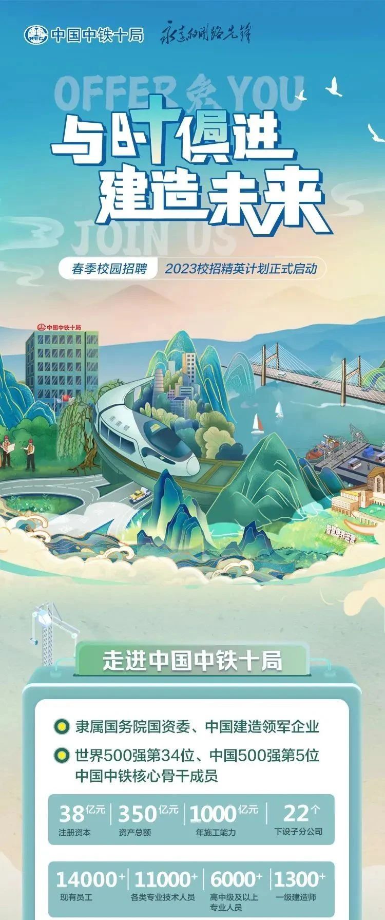 中国中铁十局2023春季校园招聘精英计划正式启动—法学、财务、物流、人力资源